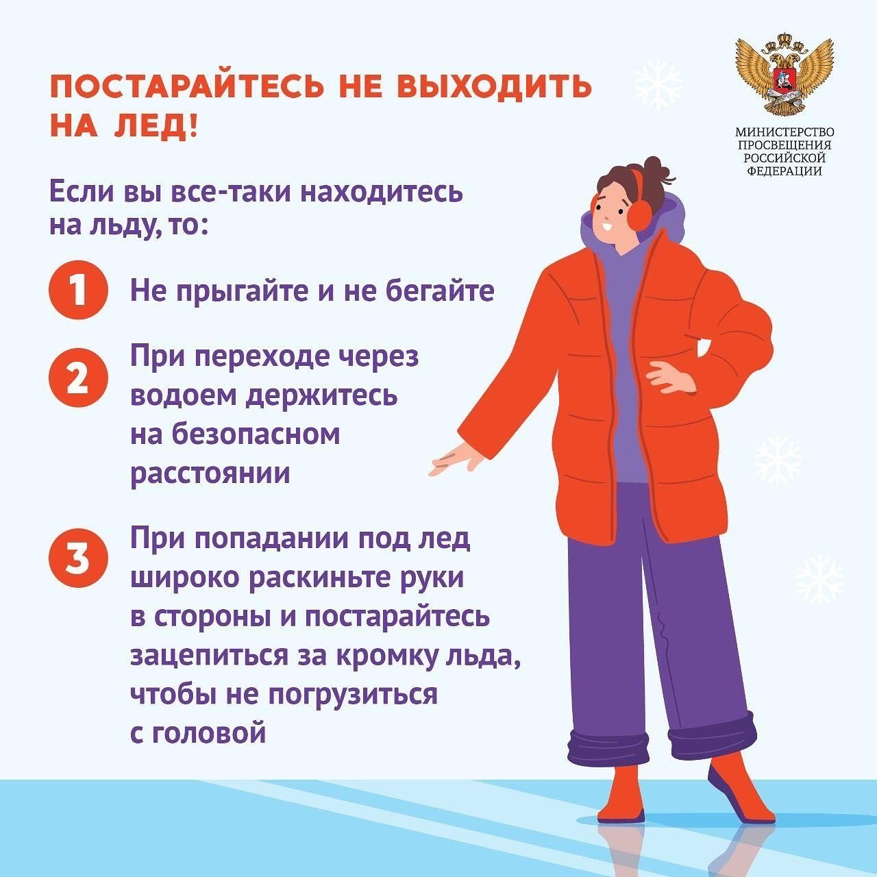 28.12.2022🧊ГОЛОЛЕД - это слой плотного льда, образовавшийся на поверхности земли, тротуарах, проезжей части улицы и на предметах (деревьях, проводах и т.д.) при намерзании переохлажденного дождя и мороси (тумана). Корка намерзшего льда может достигать нескольких сантиметров.❗️По статистике, около 40% всех ДТП в зимнее время вызвано гололедом и снегопадом.⚠️ПРАВИЛА ПОВЕДЕНИЯ НА УЛИЦЕ В ГОЛОЛЕД⚠️Внимание и осторожность – это главные принципы поведения, которых следует неукоснительно придерживаться в гололед. Во время перемещения по скользкой улице не спешите, избегайте резких движений, постоянно смотрите себе под ноги; если нужно осмотреться, не стоит этого делать на ходу – лучше остановиться. Ноги должны быть слегка расслаблены и согнуты в коленях, корпус при этом чуть наклонен вперед. Держать по привычке руки в карманах в гололед опасно: при падении едва ли будет время их вынуть и ухватиться за что-нибудь. Пожилым людям рекомендуется обзавестись тростью с резиновой набойкой.Свой маршрут по возможности надо проложить подальше от проезжей части. В то же время не желательно идти в непосредственной близости от стен зданий, на кровлях которых нередко образуются сосульки. Пересекая проезжую часть дороги, следует быть предельно внимательным, и, конечно же, правилом перехода на другую сторону улицы исключительно по пешеходному переходу ни в коем случае не пренебрегать. Огромную опасность в гололед представляют ступеньки; но если вам все-таки предстоит спуститься по скользкой лестнице, то ногу необходимо ставить вдоль ступеньки, в случае потери равновесия такая позиция позволяет съехать вниз, настолько аккуратно, насколько это возможно в подобной ситуации в принципе.🏥ЕСЛИ ПАДЕНИЯ НЕ УДАЛОСЬ ИЗБЕЖАТЬЕсли вы чувствуете, что падение неизбежно, присядьте и наклонитесь в сторону, так как это делают хоккеисты. Неудачное падение на спину чревато травмой позвоночника, а на вытянутые вперед руки – переломом плеча или запястья, поэтому постарайтесь сгруппироваться: прижать локти к бокам, втянуть голову в плечи, напрячь мускулы.👩⚕️ Первую доврачебную помощь можно оказать прямо на месте. Если травмирована конечность, то ее, прежде всего, нужно обездвижить, зафиксировать с помощью шины, на руку сделать поддерживающую повязку; для этого могут быть использованы предметы, которые всегда есть рядом: доска, шарф, косынка. Для того чтобы снять отек, уменьшить болевые ощущения к ушибу или перелому желательно приложить что-нибудь холодное, снег для этого вполне подойдет. Получив травму, не стоит заниматься самолечением, обязательно и безотлагательно обратитесь в больницу.