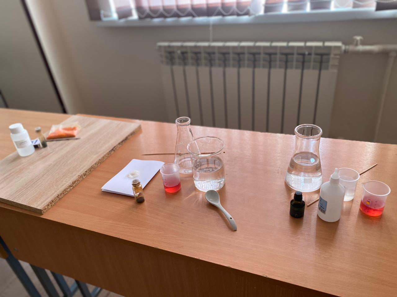 18.10.2023Познавательная игра по химии среди 9-х классов: «Путешествие в мир химии»Провела Ильясова Л.С-Э.Цель мероприятия: -развитие познавательного интереса учащихся к предмету химия;-обобщение, закрепление и систематизация знаний о химических элементах, понятиях, о соединениях;-умение работать в команде;-расширение кругозора учащихся.Оборудование и реактивы для опыта «Светофор»: перманганат калия KMnO4, вода, раствор гидроксида натрия NaOH, сахар.Оборудование и реактивы для опыта «Обесцвечивание зелёнки»: зелёнка, вода, перманганат калия KMnO4, перекись водорода H2O2, р-р гидроксида натрия NaOH.Оборудование и реактивы для опыта «Вулкан Бёттгера»: дихромат аммония (NH4)2Cr2O7.1-е место получила команда «Водород» 9 в класса;2-е место-команда «Кислород» 9 б класса;3-е место-команда «Углекислый газ» 9 а класса. Все дети приняли активное участие.