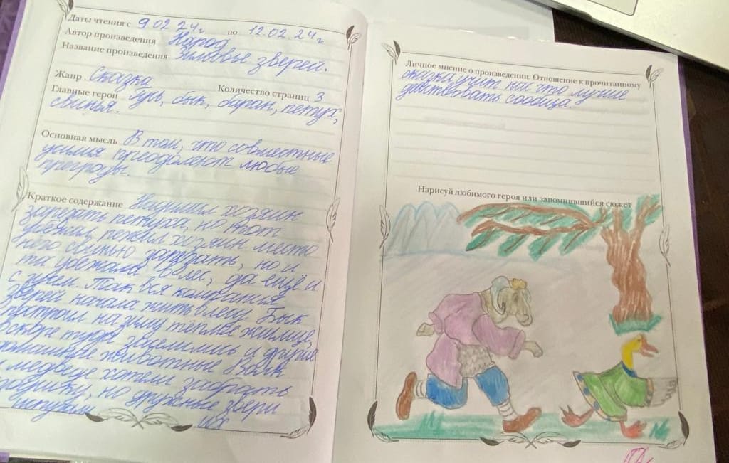 14.02.2024Читательский дневник способствует развитию речи, умению работать с текстом, повышению темпа чтения, повышению качества чтения, развитию творческих способностей у детей младшего школьного возраста.Внедрение читательского дневника в образовательный процесс младшего школьника позволяет формировать духовно - нравственные ценности через массовое приобщение учеников к книге и к систематическому чтению. Благодаря чтению книг развивается гармоничная личность. К чтению невозможно прийти под страхом наказания. Чтение - есть процесс, осознанный личностью, как необходимый для развития.Читательские дневники 2а класса. Асуханова П.М.