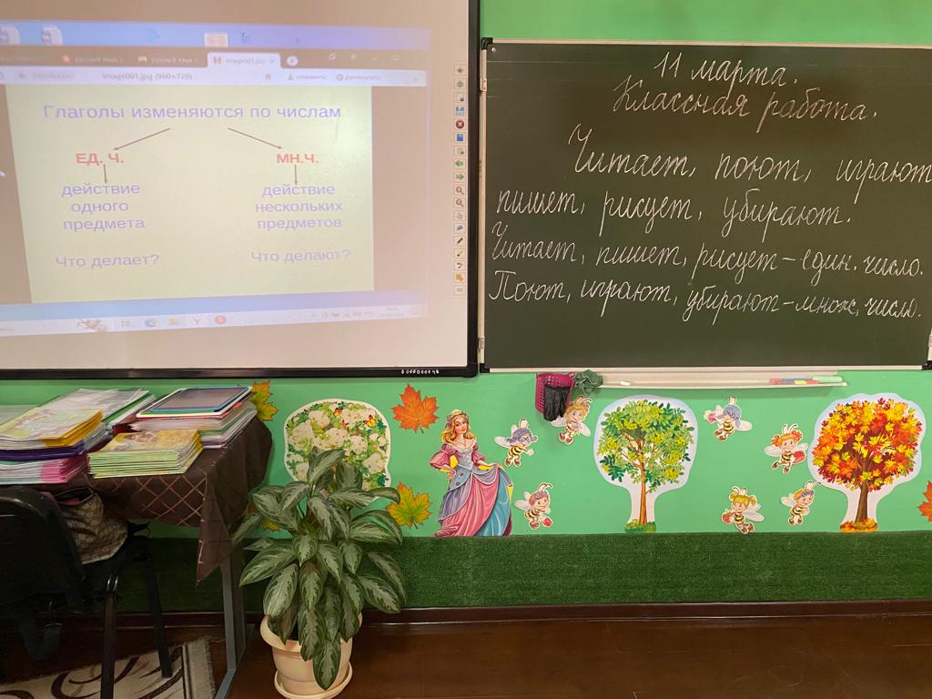 12.03.2024Урок русского языка во 2а классе. Тема:"Единственное и множественное число глаголов". Цель урока:познакомить с единственным и множественным числом глаголов, научить определять число глаголов, ставить глагол в форму единственного и множественного числа, развивать речь, коммуникативные навыки.Планируемые результаты: учащиеся научатся определять число глаголов; анализировать, делать выводы, сравнивать.Тип урока: изучение нового материала.Формы работы учащихся: работа в парах, индивидуальная, фронтальная.