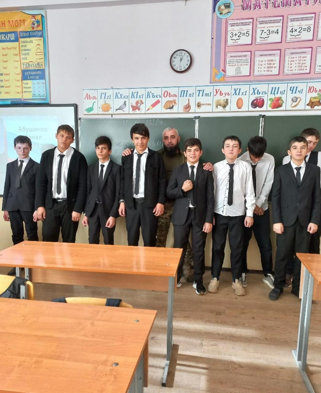 Встреча учащихся 9-х классов с участником СВО Башаев Юша Нажмудиевич.