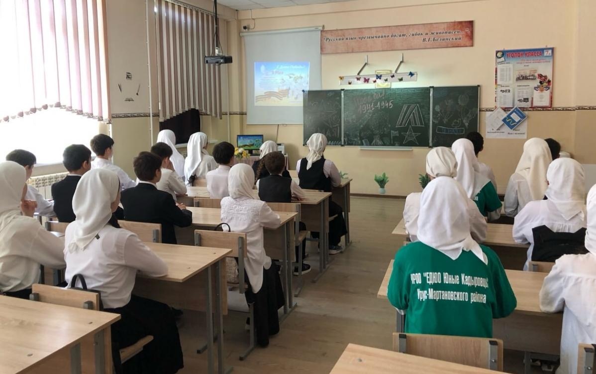 09.05.2025В рамкахмероприятий, приуроченных ко Дню Победы в МБОУ «СОШ Nº8 им.Арби Вахаева» г.Урус-Мартан проводились классные часы.День Победы — праздник победы Красной армии и советского народа над нацистской Германией в Великой Отечественной войне 1941—1945 годов. В этот день принято вспоминать подвиги наших дедов и прадедов, которые освободили свою землю от немецко-фашистских захватчиков.Цель : Воспитать у обучающихся патриотические чувства к своей Родине, гордость за ее героическое прошлое, уважение к участникам Великой Отечественной войны, готовность к жертвенным поступкам во имя величия и процветания Республики.