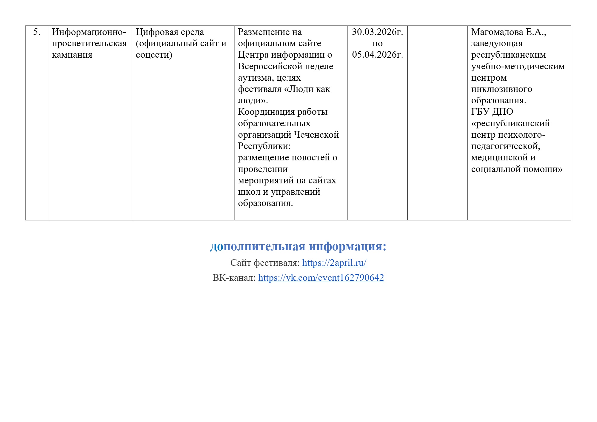 03.04.2026В период с 29 марта по 5 апреля 2026 года проводится юбилейный X Всероссийский инклюзивный фестиваль#ЛюдиКакЛюди, который проводится в рамках Всероссийской недели распространения информации об аутизме вочном, онлайн и смешанном форматах. Инклюзивный фестиваль #ЛюдиКакЛюди (далее – Фестиваль) проводится с 2017 года. C 2020 года он приобрел статусвсероссийского. В 2025 году фестиваль прошел на 721 площадке в 66 регионах страны. В Москве в нем приняли участие более6000 человек, мероприятия собрали более 500 тысяч просмотров в онлайн-трансляциях. Общий информационныйохват составил более 10 млн. человек. Генеральный партнер фестиваля: Благотворительный фонд Сбербанка «Вклад вбудущее».